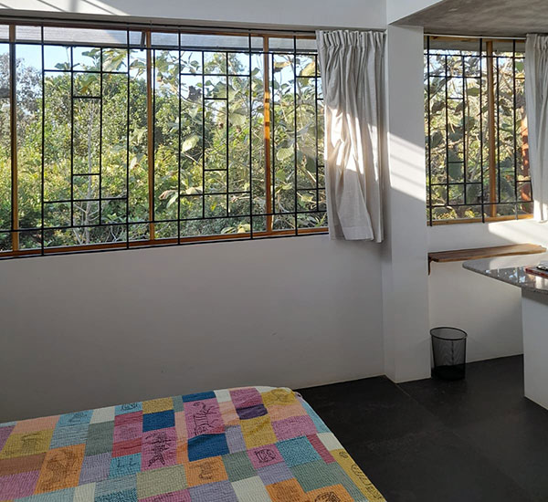Gita Wolf, the founder of Tara Books, lives in the cottage below the residency space. The residency space has two generous bedrooms, as well as a small kitchen, and common spaces for eating and working. There may or may not be another resident at the time of the residency. Tara has no objections to a partner sharing a room with the resident – against some nominal utility charges.