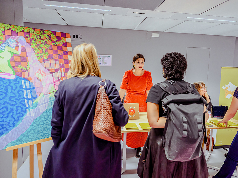Lauren Januhowski’s Passage of Transfer, a work conceptualised during her 2024 residency at the Kalhath Institute, was presented at Villa Swagatam’s pavilion at La Gaîté Lyrique. Also featured were the zine Land of the Lama by Simon Lamouret, developed during his residency at Rachna Books, and the recently published book Fruit Salad by Chiara Armellini, created in collaboration with Tara Books.