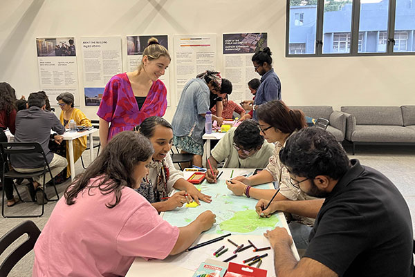 Elsa Mroziewicz is a multidisciplinary artist—illustrator, pop-up engineer, director, and author—whose works invite audiences into narrative, dreamlike, and poetic worlds with mythological influences, often blurring the line between reality and fiction. She collaborates on transmedia projects like Arbres-Mondes (Worlds-Trees) and is currently working with author Cécile Palusinski on augmented sound frescoes in AR, including Floating Cities, The Universal Forest, and Flying High, with the aim of raising awareness of ecological issues. During her residency with MAD Salon + Labs in India from July to August 2024, Elsa advanced the Floating Cities project, developing a new fresco panel inspired by the city of Bangalore and its space innovations. As part of her residency, she conducted a series of workshops, including a pop-up book workshop for children undergoing treatment at Sri Shankara Cancer Hospital, creative workshops at Rbanms Educational Charities School and the National Science Gallery in Bangalore, and a collaborative session at Alliance Française in Pune. Additionally, she participated in the Bangalore Literary Festival, leading a roundtable on book design and a presentation on pop-up books for children. Elsa’s work aims to inspire reflection and action on environmental challenges, with plans to showcase the project at Oceans 2025 and other cultural venues. During the summer of 2024, she came back to India with her co-author Cécile Palusinki to study floating gardens and aquaculture in Kerala’s Kuttanad region.