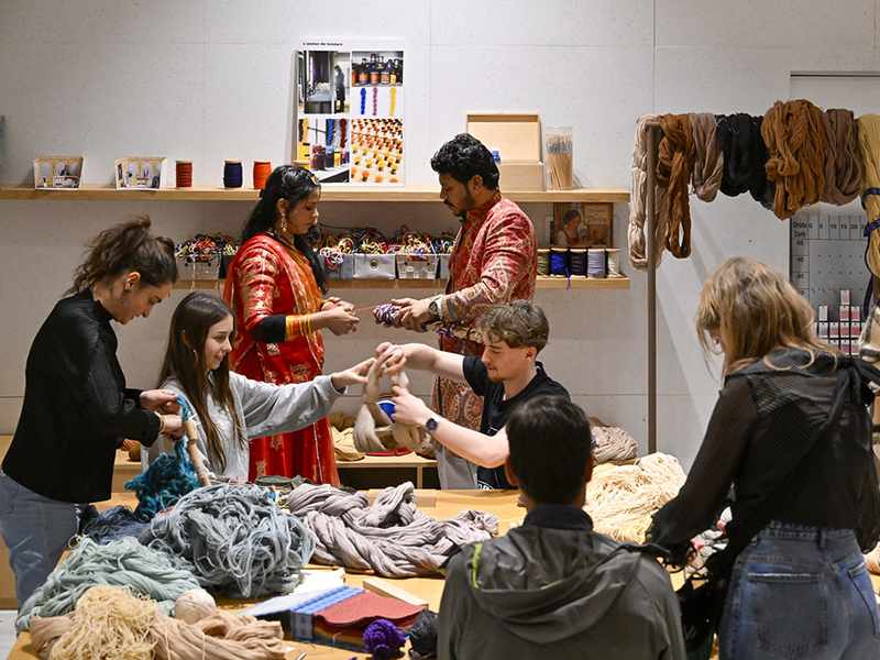 Through seven thematic sections, the exhibition highlights how artists, artisans, designers, and architects have shaped a shared visual and material language. Rare historical textiles sit alongside contemporary commissioned works and new collaborative creations such as the participative embroidery displayed within the exhibition space, revealing how craft traditions have continually transformed past legacies into vital, living practice.