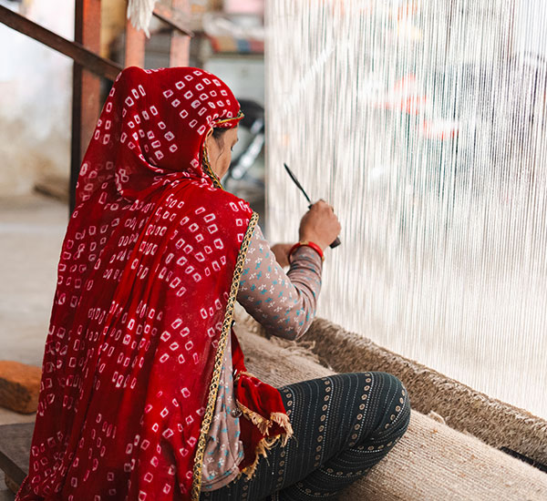 Initiatives like “Manchaha - what the heart desires”, where weavers have the freedom to design their rugs, have led to a cultural movement where the artisans are expressing simple thoughts in unexpected patterns, showcasing their personal stories and the culture in which they live. The weavers pick and choose the aspects of their reality around them, give shape to their intangible thoughts, and as an evolving engagement with their carpet creations, translate their experiences in the form of art. Jaipur Rugs’ International Artist Village Residency aims to create interactive art spaces in the villages of Rajasthan, where the women weavers work from the comfort of their homes. The residency believes in the creative capabilities of the grassroots and the possibilities of innovation by facilitating the strength of co-creation of traditional, generational weavers and the international contemporary artists of the world. Through this exchange, a fusion of ancient weaving techniques, honed over 2500 years, and modern artistic expression emerges, all inspired by the land and culture of Rajasthan, India. The project developed throughout the residency may later be exhibited in one of the global stores of Jaipur Rugs (Jaipur/Dubai/London/Milan)
