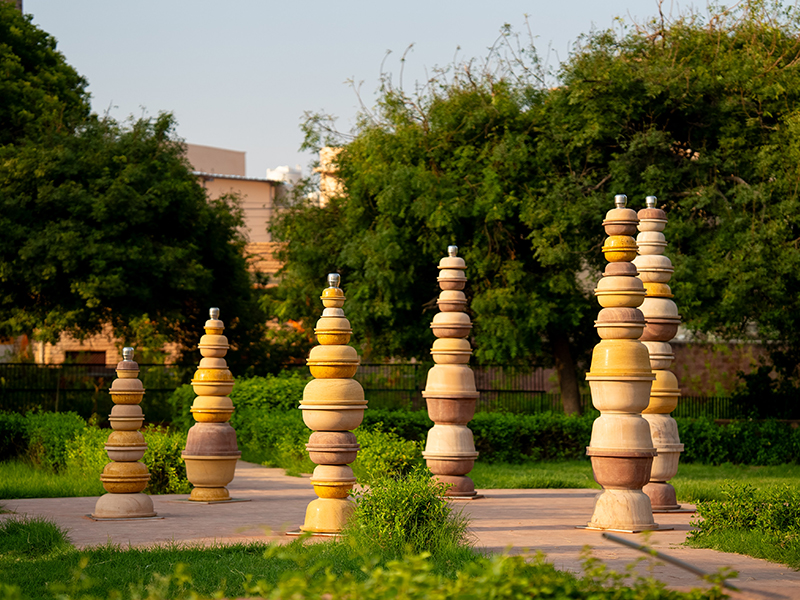 Gaspard’s installation was developed during his residency with PATI in January and February 2025. His sculptural works merge megalithic references with everyday objects, exploring the tension between ancient symbols and modern artefacts, and reflecting with subtle humour on consumption, spirituality, and the pace of modern life. The production of the installation is supported by the French Institute in India, Villa Swagatam, and StoneX Global.