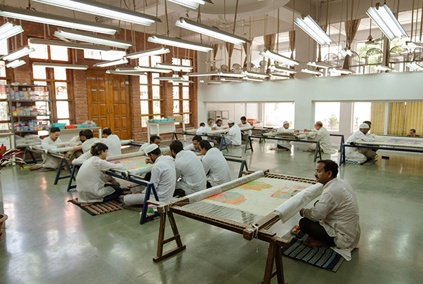 The craftsmen on the Kalhath team are specialists in hand embroidery; their craft covers the techniques of Zardosi, Ari and a host of others, passed down through generations of craftsmen. The resident is encouraged to utilize the artisanal resources at Kalhath for the duration of their residency in an environment that is symbiotic in nature. In the recent past, Kalhath has had artists such as T. Venkanna and Pauline Guerrier - in collaboration with the French Institute in India - create artworks with their artisans.