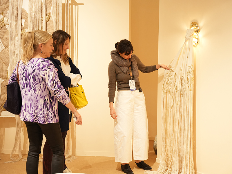 Developed in close creative collaboration with Amal Embroideries in Mumbai, in their first partnership with Æquō Gallery, the project unfolded through constant exchange, experimentation and testing. The ateliers engaged in an ongoing dialogue with the artist, allowing embroidery to move beyond surface decoration and become structure and volume.
