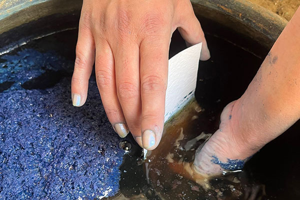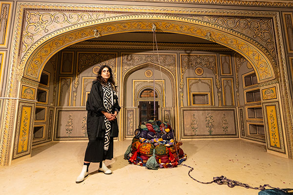 Martha-Maria Le Bars, a French artist who blends painting and sculpture, is known for creating speculative environments where colour becomes an independent force. With a background in textile design from the Duperré School, she integrates craft and textile techniques into her artistic practice, developing innovative approaches to painting beyond the traditional stretcher frame. Her work is characterised by slowness, gentleness, and fragility, offering an alternative to the fast pace of globalisation. As a result of her residency at Villa Swagatam, Martha-Maria had the opportunity to showcase two sculptures, Between (necklace, bangles, a woment story), at the Sculpture Park in Madhavendra Palace, Jaipur, as part of an international group exhibition curated by gallerist Peter Nagy, which runs until December 2024. She also led a workshop alongside Ojasvi Peshawaria during Jaipur Design Week 2024, focusing on the discovery of indigo for students from Jaipur's design schools. Additionally, her work was presented to President Emmanuel Macron during his visit to Jaipur, in January 2024, as part of an arts & crafts display at Amber Fort.