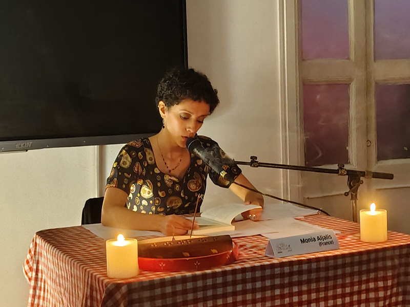 Monia concluded the Long Night of LiteratureS with a powerful performance in Varanasi, collaborating with a classical tabla musician, creating a rhythmic dialogue between words and sound. The performance was met with deep appreciation from the audience. She also participated in a moderated session with Dr. Vasumathi Badrinathan from the Banaras Hindu University, discussing poetic practice, influences, and the emotional landscapes of her work.