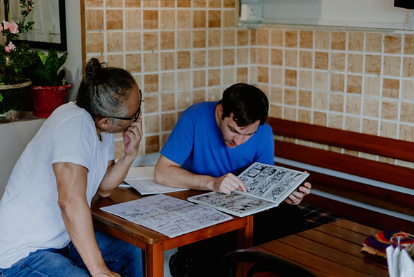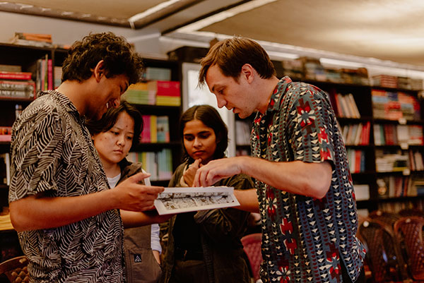Simon Lamouret, a graphic novelist and illustrator from Toulouse, France, studied at Beaux-Arts d’Angoulême and École des Arts Décoratifs in Strasbourg. After moving to Bangalore in 2013, his experiences there inspired two graphic novels, Bangalore (Warum, 2017) and L’Alcazar (Sarbacane), which capture the city’s construction sites and workers. L’Alcazar was also published in English by Bharat Murthy. During his residency at Rachna Books in Gangtok, Simon collaborated with local journalist Pema Wangchuk on a 13-page short story that may become part of his upcoming novel In the Land of the Lamas, which blends mystical tales of Baba Harbhajan with local legends and military traditions. His short story was launched at a storytelling event hosted by Rachna Bookstore, and the novel has already piqued the interest of a French publisher. Simon also participated in Drukyul’s Literature and Arts Festival, where he joined a panel on "Global Perspectives in Visual Narratives" and led a workshop, "Building Stories: An Introduction to Comic Books," helping participants explore visual storytelling through comic strips.