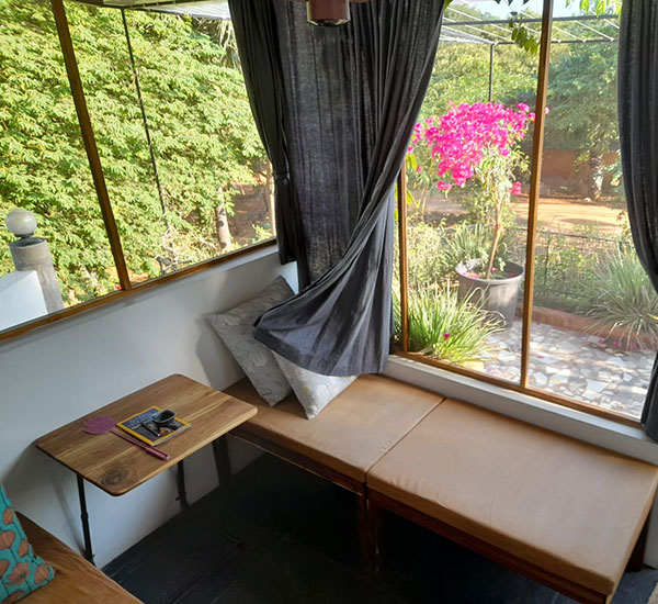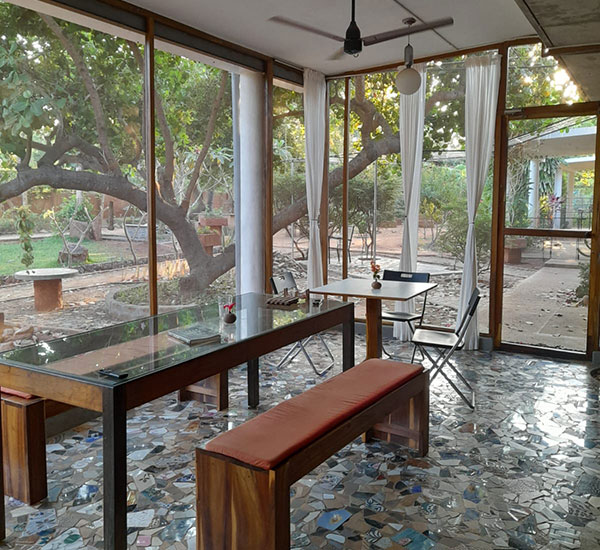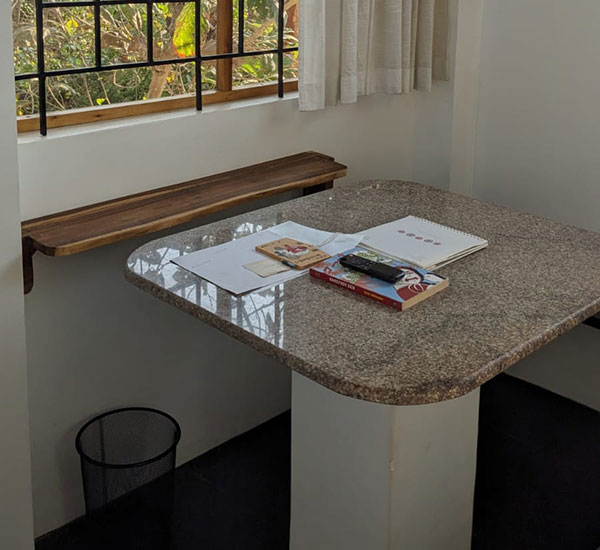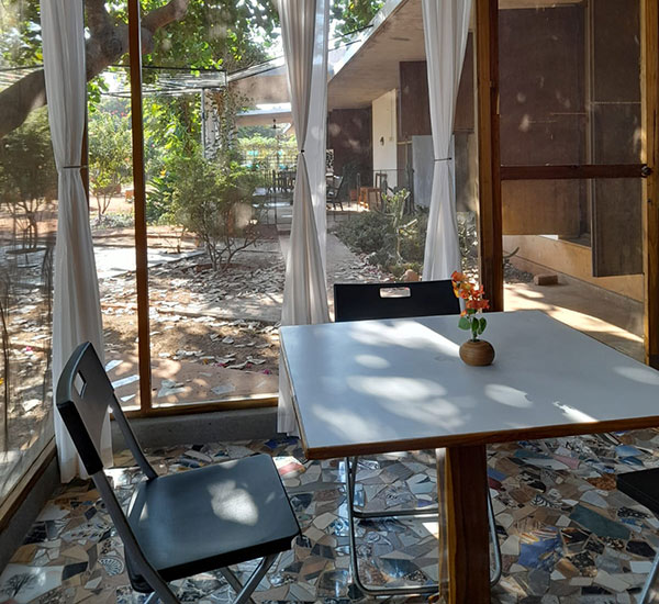 Gita Wolf, the founder of Tara Books, lives in the cottage below the residency space. The residency space has two generous bedrooms, as well as a small kitchen, and common spaces for eating and working. There may or may not be another resident at the time of the residency. Tara has no objections to a partner sharing a room with the resident – against some nominal utility charges.