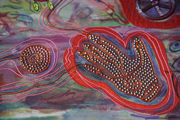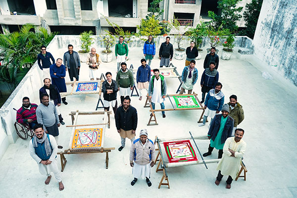 Through my work, I was playing a game of "ping-pong" with the craftsmen: I started a drawing - ink interventions on the fabric - then the artisans embroidered it, and I transformed the drawing again, and so on throughout the creative process. The starting point is a bestiary that is half human half animal, freely inspired by fairy tales, but also by the history of Lucknow city, as well as its embroidery techniques.